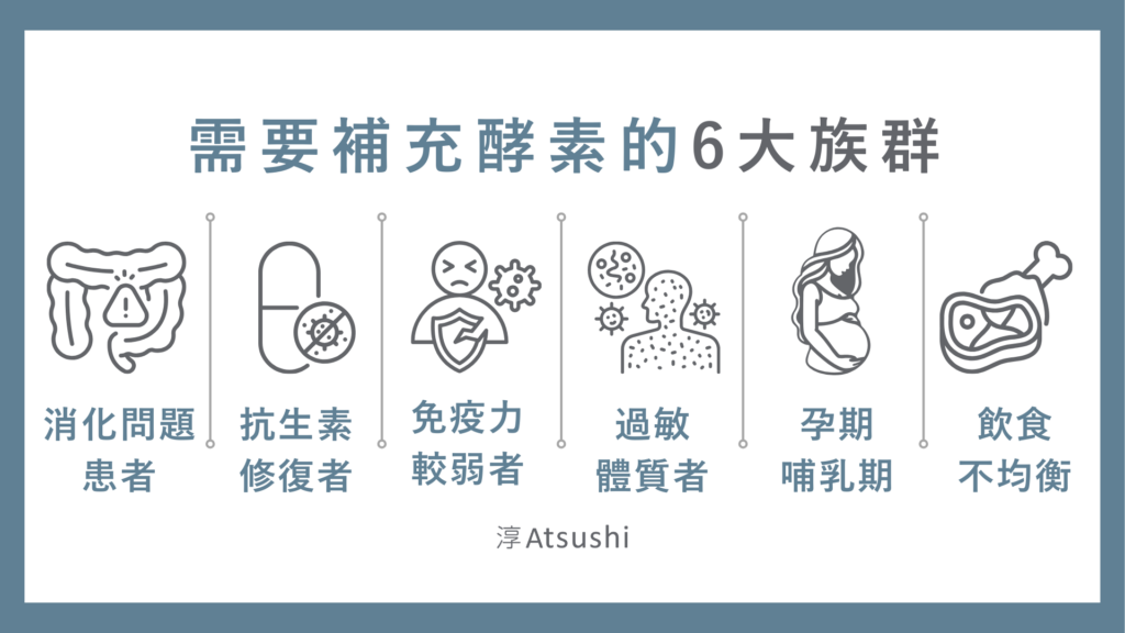 - 中高齡族群: 身體自行產生酵素的能力逐漸下降